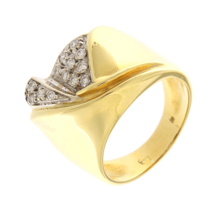 Anello contrariè con finali di rosette con 14 diamanti taglio brillante misura francese 59