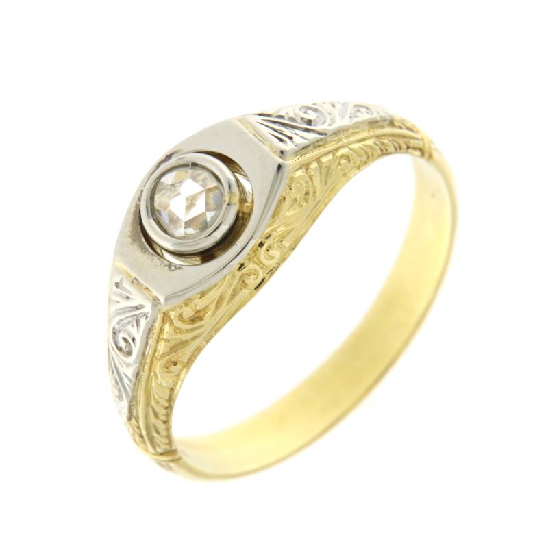 ANELLO IN ORO FASCETTA CON TRAFORO Anello in oro giallo, fascetta leggermente bombata conmotivo floreale traforato centralmente, lavorazione lucida