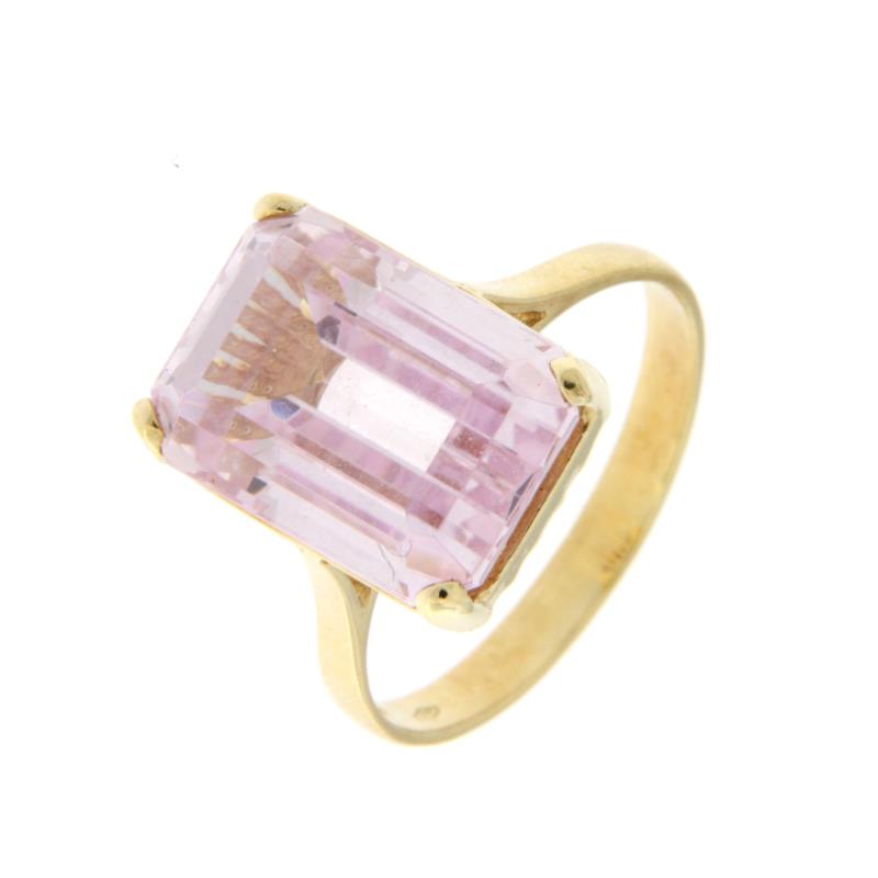 ANELLO CON CASTONE A GRIFFE LAVORATO E ROSA DI FRANCIA TAGLIO SMERALDO MIS ITA 15 MIS FRA 55 ORO GIALLO 750/1000 GR 3.5