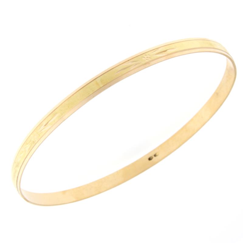 BRACCIALE IN ORO RIGIDO INCISO Bracciale in oro giallo, Rigido tondo piatto a sezione piena con incisioni sulla superficie, lavorazione lucida e satinata