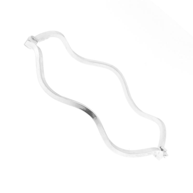 Splendido bracciale rigido a canna vuota rettangolare con lavorazione liscia e ondulata. Chiusura a cassetta con sicurezza laterale.