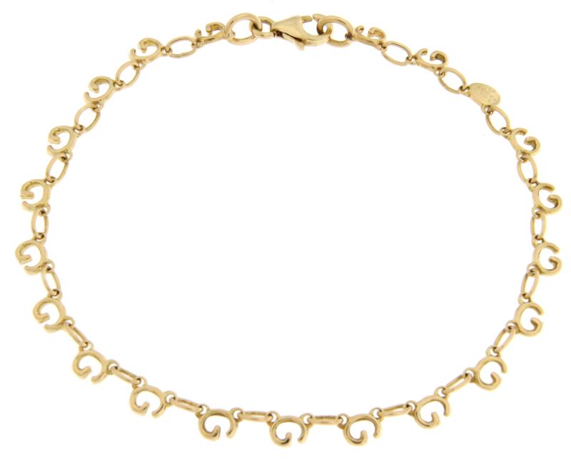 Gucci bellissimo bracciale sofisticato per la donna moderna che seduce con semplicità,è composto da una maglia rolò alternata da tante piccole g , in oro giallo 18 kt lungo cm 19 gr 4.8