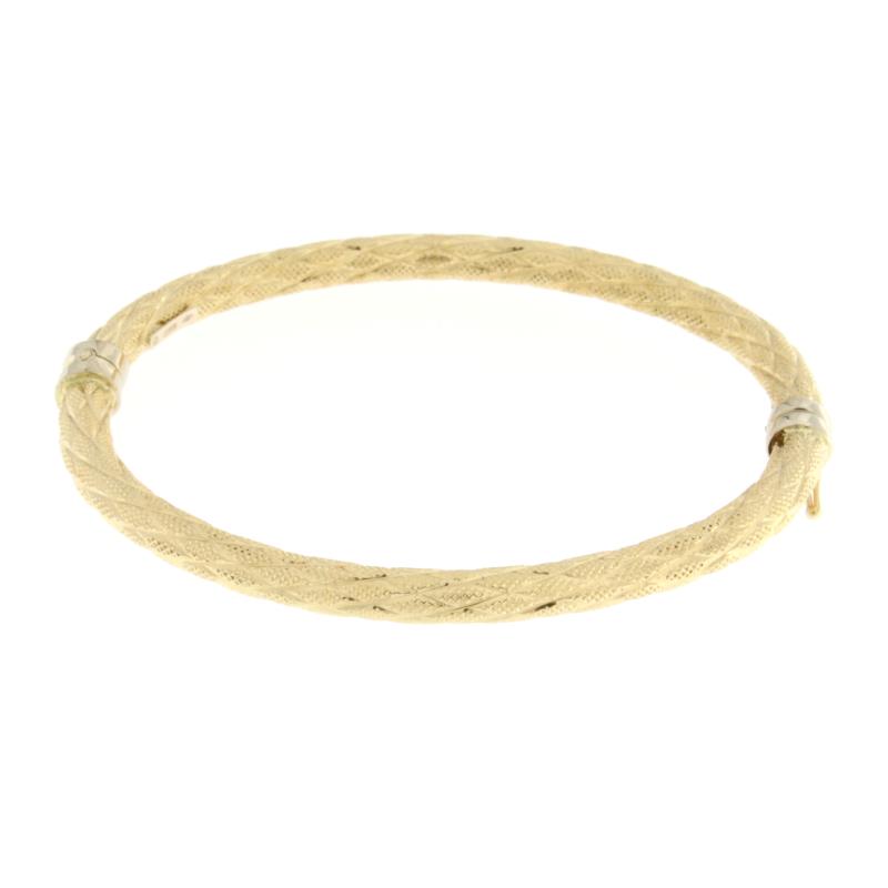 BRACCIALE RIGIDO CANNA VUOTA TUBOLARE LAVORATO, SATINATO,DIAMETRO 7 CM,ORO GIALLO 750/1000 GR. 6.9