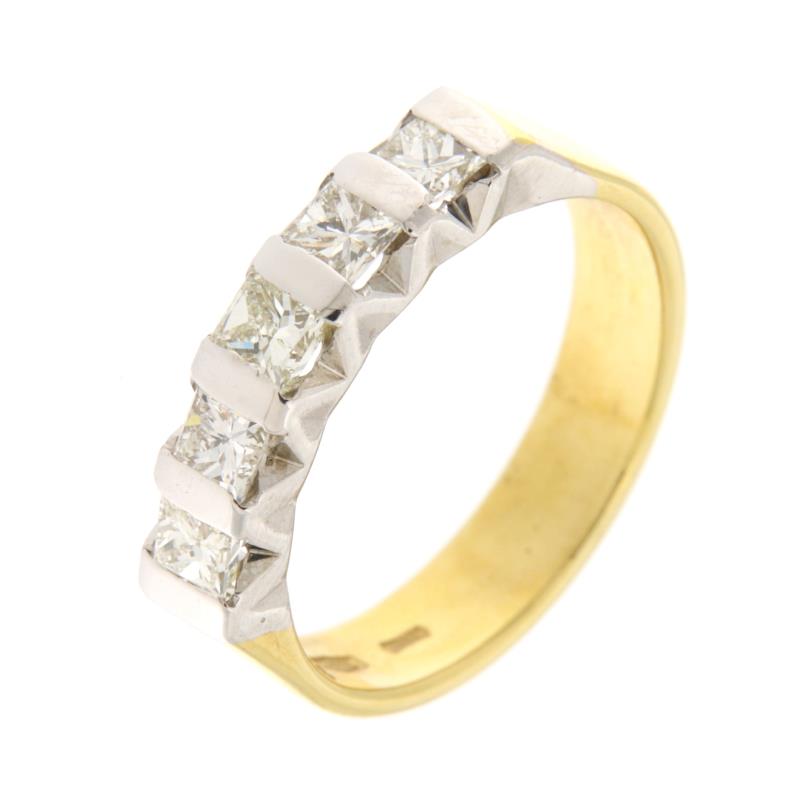 CIONDOLO IN ORO CROCE CON ZIRCONI Ciondolo in oro giallo, Croce squadrata lineare, composta da fila di Zirconi taglio Brillante, incassatura interna battuta, lavorazione lucida