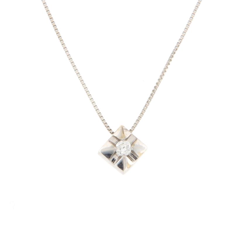CIONDOLO CROCE IN ORO CON ZIRCONI Ciondolo in oro bianco, composto da barrette ondulate sovrapposte a forma di Croce stilizzata con fila di Zirconi taglio Brillante, incassatura con punte, lavorazione lucida
