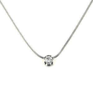 COLLANA IN ORO MAGLIA VENETA CON ZIRCONI Collana in oro bianco, maglia Veneta sottile lungh cm 46.80 largh cm 0.05 con ciondolo passante composto da castone iniziale e piastrina a forma di Goccia lungh cm 1.30 largh cm 0.60 con fila di Zirconi Bianchi taglio Brillante e Zircone Rosso taglio a Goccia centrale, lavorazione lucida e chiusura con anello a molla.