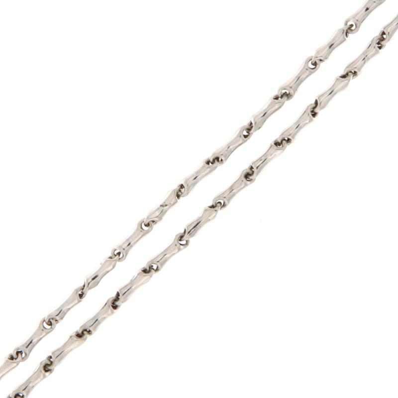 COLLANA IN ORO MAGLIA BAMBOO Collana in oro bianco, maglia Bamboo composta da cilindri, lavorazione lucida, chiusura con moschettone