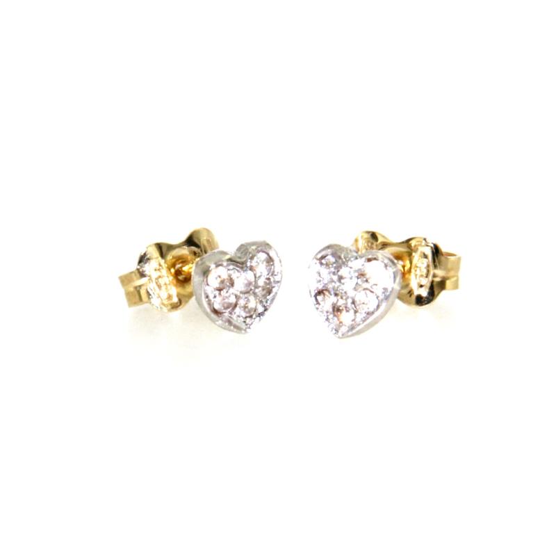 ORECCHINI A LOBO A FORMA DI CUORE CON PAVÈ DI ZIRCONI LUNGH CM 6 MM ORO GIALLO/BIANCO 750/1000 GR 1.1
