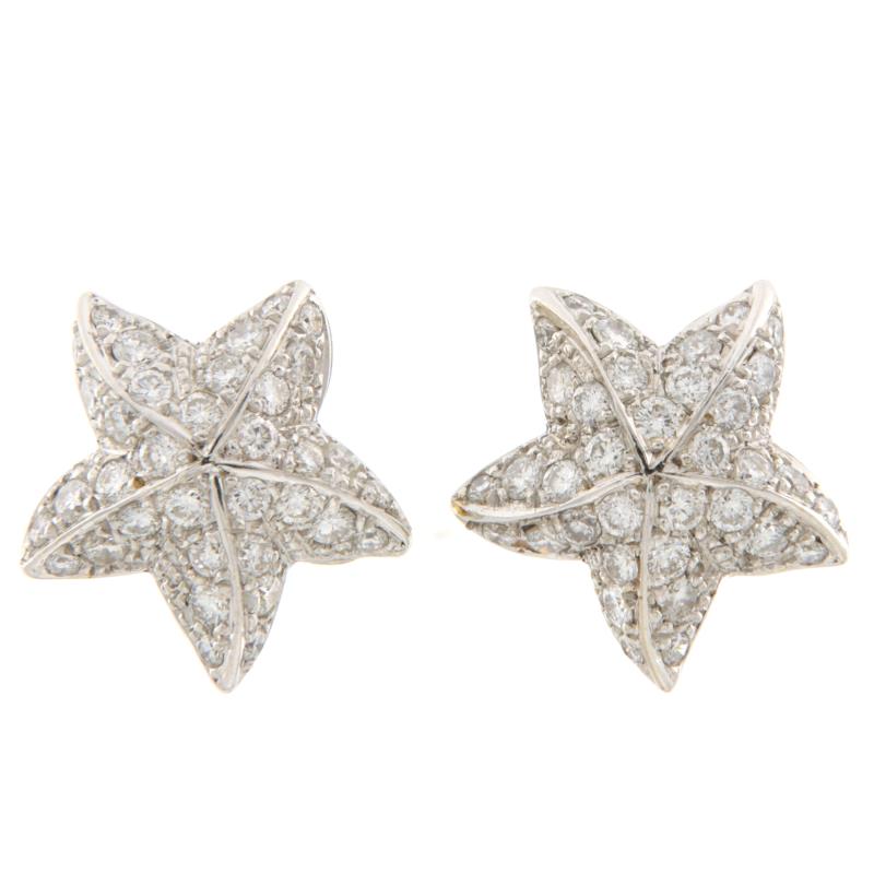 ORECCHINI IN ORO A MEZZO CERCHIO CON ZIRCONI Orecchini in oro bianco, mezzo Cerchio spessore cm 0.20 con fila di Zirconi taglio Brillante, incassatura con griffe, lavorazione lucida, chiusura con perno e farfallina